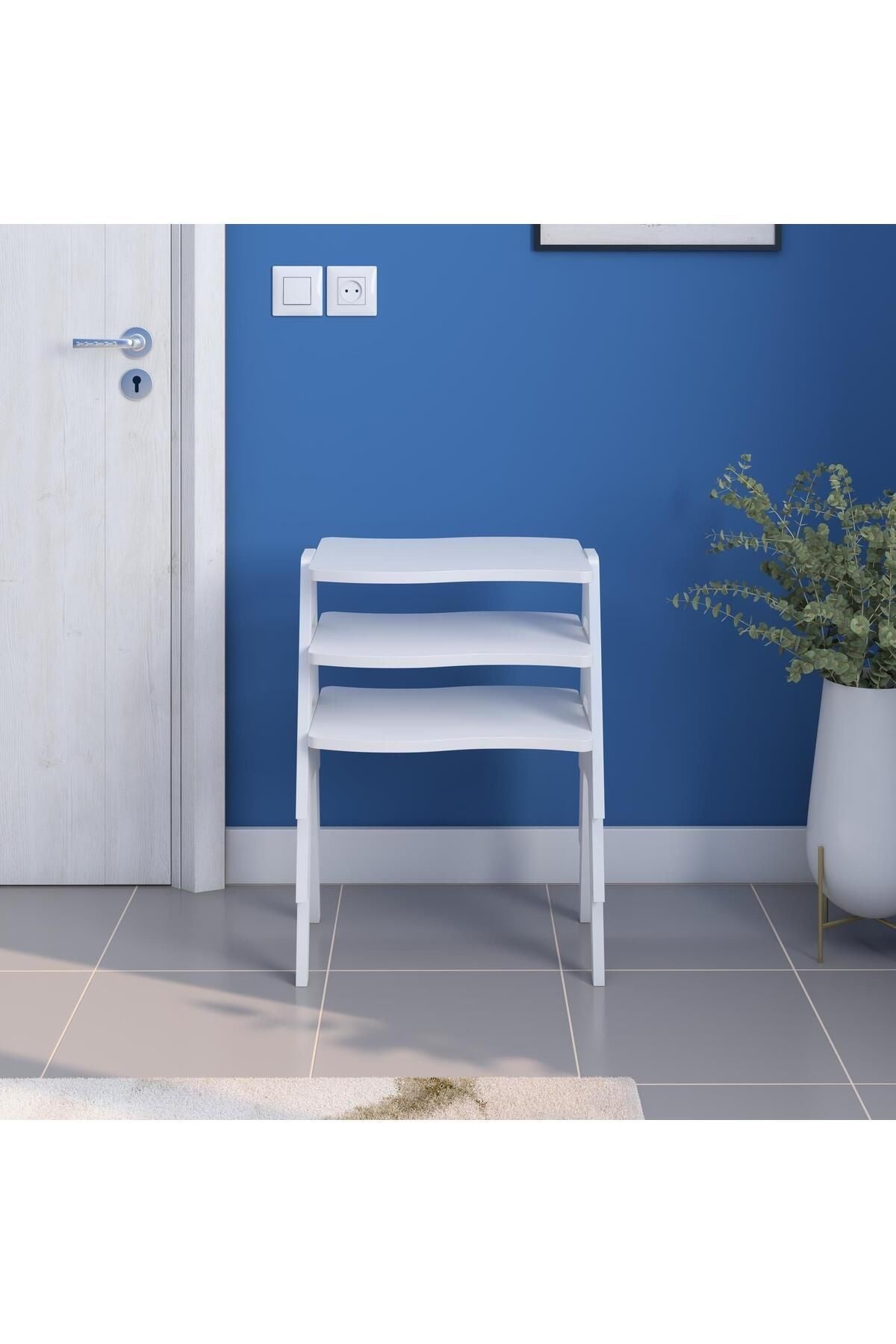 Bayrak Zigon Sehpa Seti Beyaz Gövde Beyaz Ayak