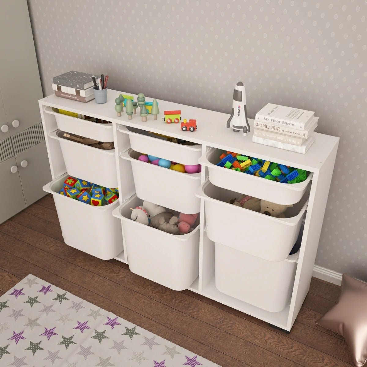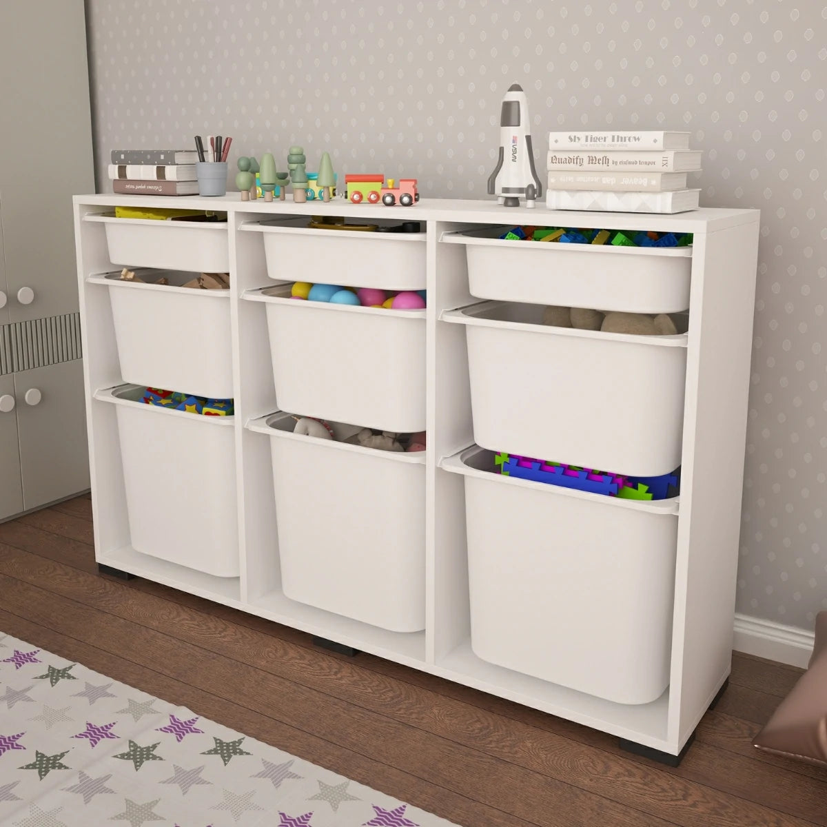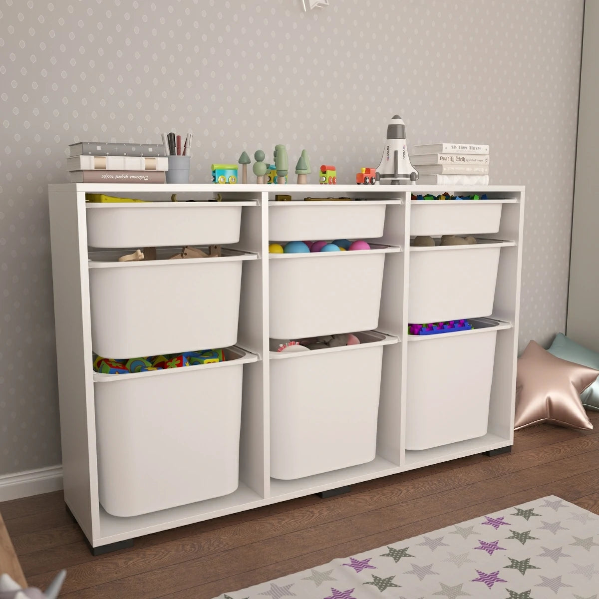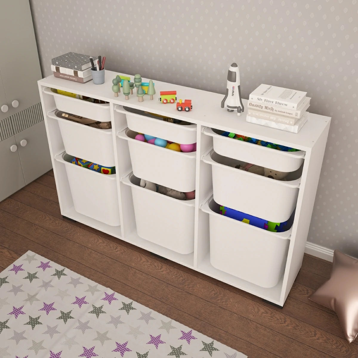 Toplamda 9 adet farklı boyuttaki plastik sepeti sayesinde kuru gıdalardan mutfak aksesuarlarına, temizlik ürünlerinden oyuncaklara kadar birçok eşyayı kolayca kategorize edebilir, mutfak düzenleyici dolap olarak da kullanabilirsiniz.