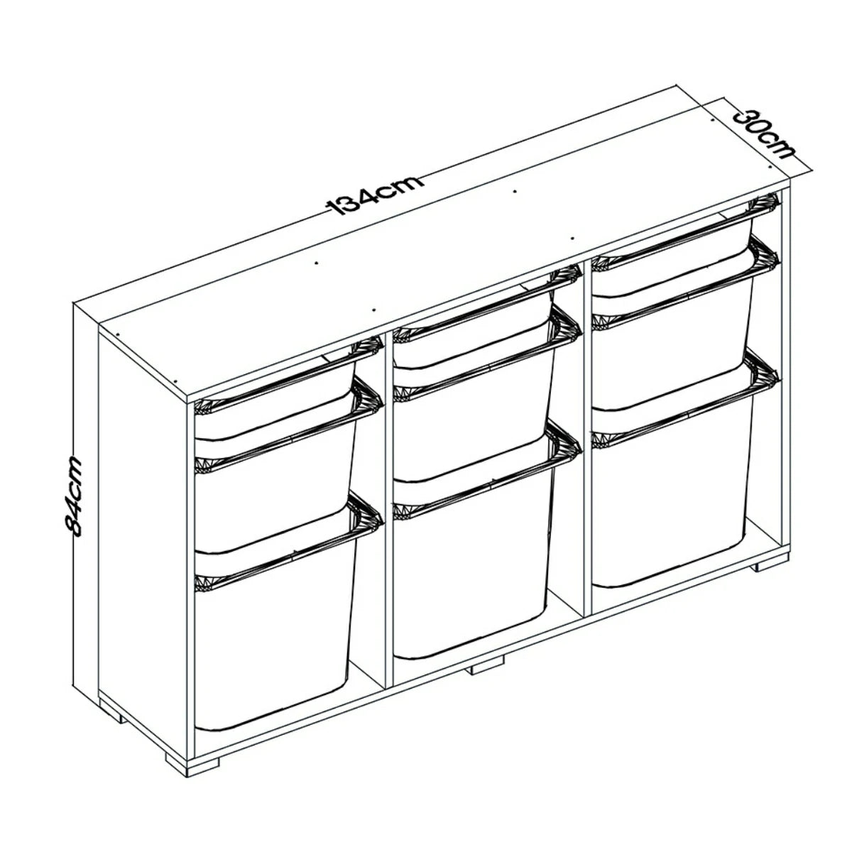 Bofi Ultra Sepetli Dolap, mutfaktan banyoya, ofisten kiler ve çocuk odasına kadar farklı alanlarda düzen sağlamak için tasarlanmış çok yönlü bir depolama çözümüdür. 134 cm genişliği, 30 cm derinliği ve 84 cm yüksekliği ile hem geniş depolama alanı sunar hem de alandan tasarruf etmenizi sağlar.