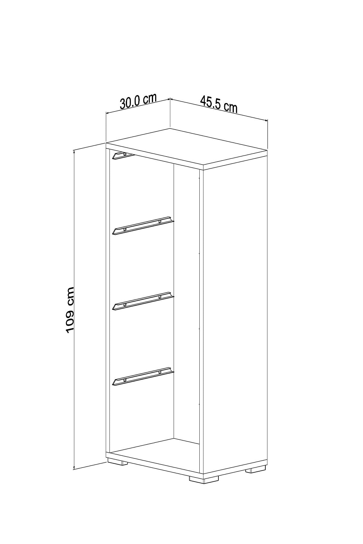 Dolap ölçüleri 45,5 cm genişlik, 30 cm derinlik ve 109 cm yükseklik olarak tasarlanmıştır. Sepet ölçüleri ise 40,5 cm genişlik, 30 cm derinlik ve 22 cm yüksekliktedir. Geniş iç hacme sahip bu sepetler, büyük hacimli eşyaların kolayca saklanmasını sağlar.