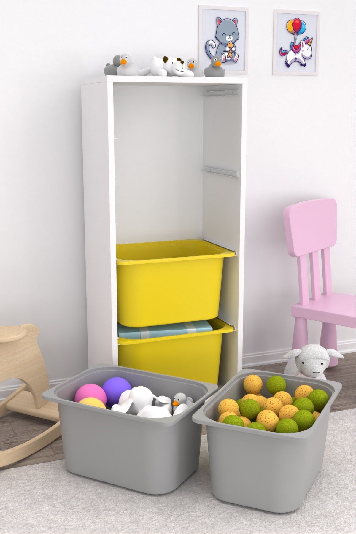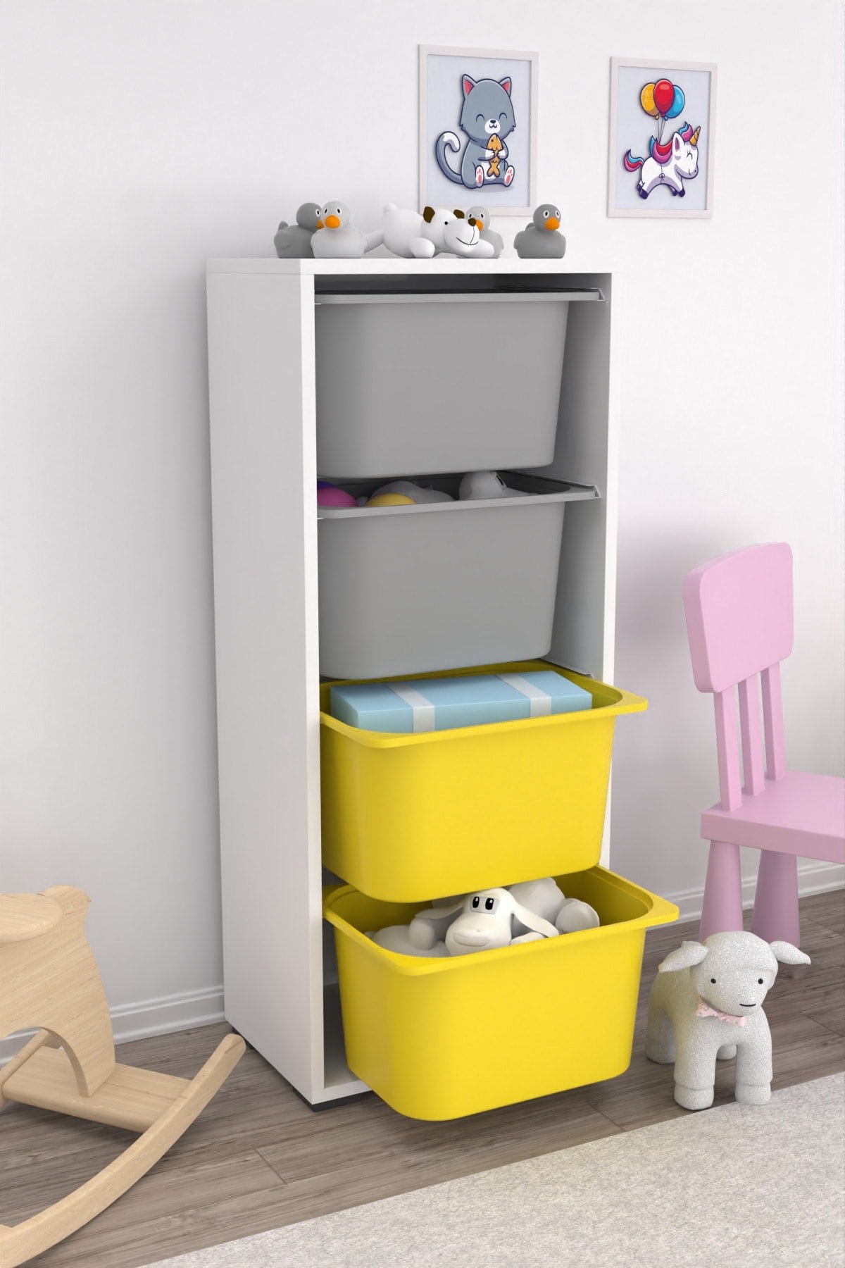 Cara 4 Derin Sepetli Çok Amaçlı Oyuncak Dolabı Sarı Gri