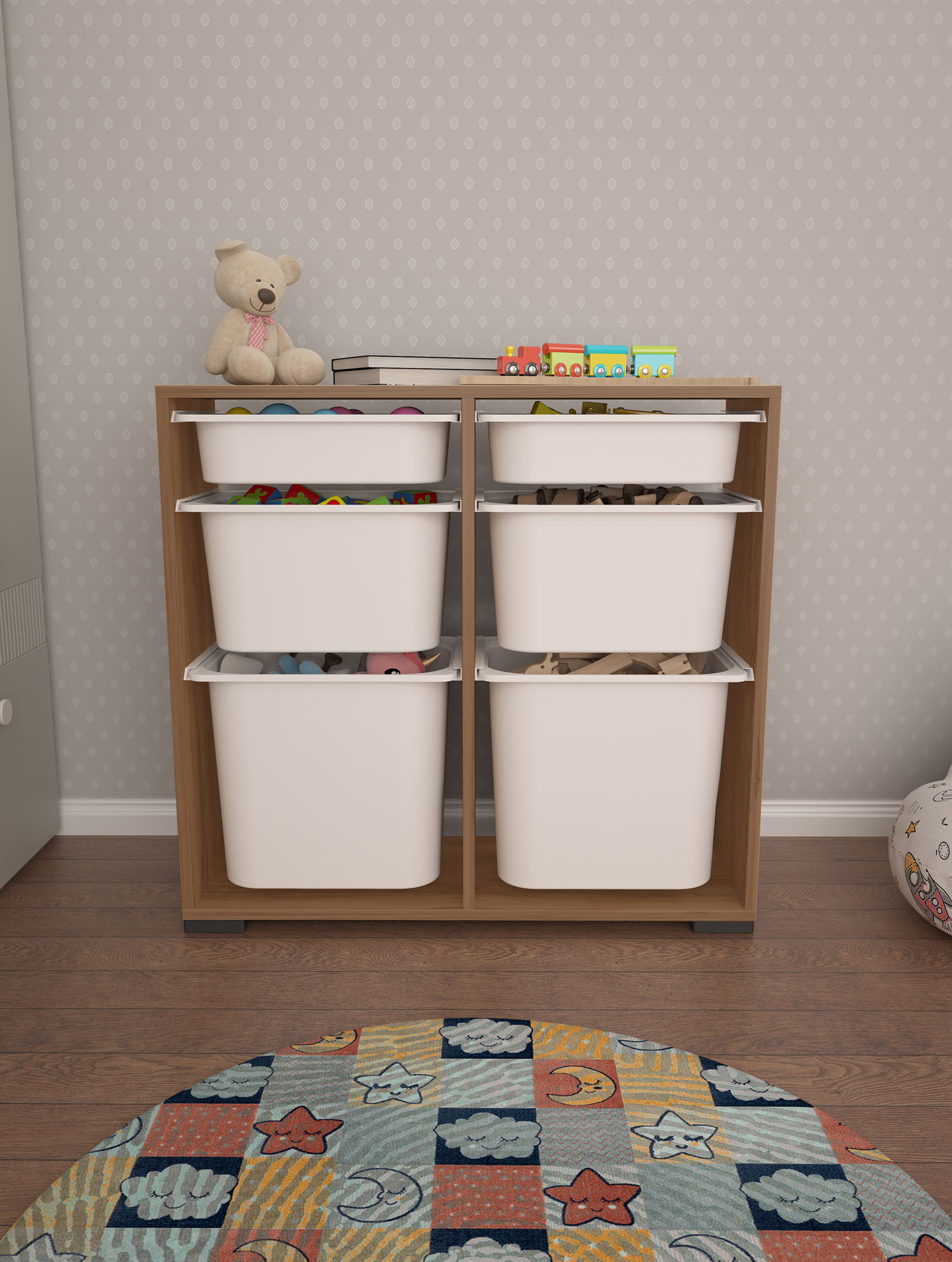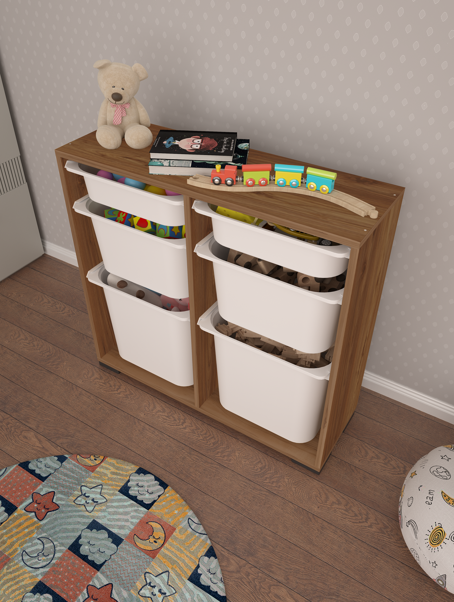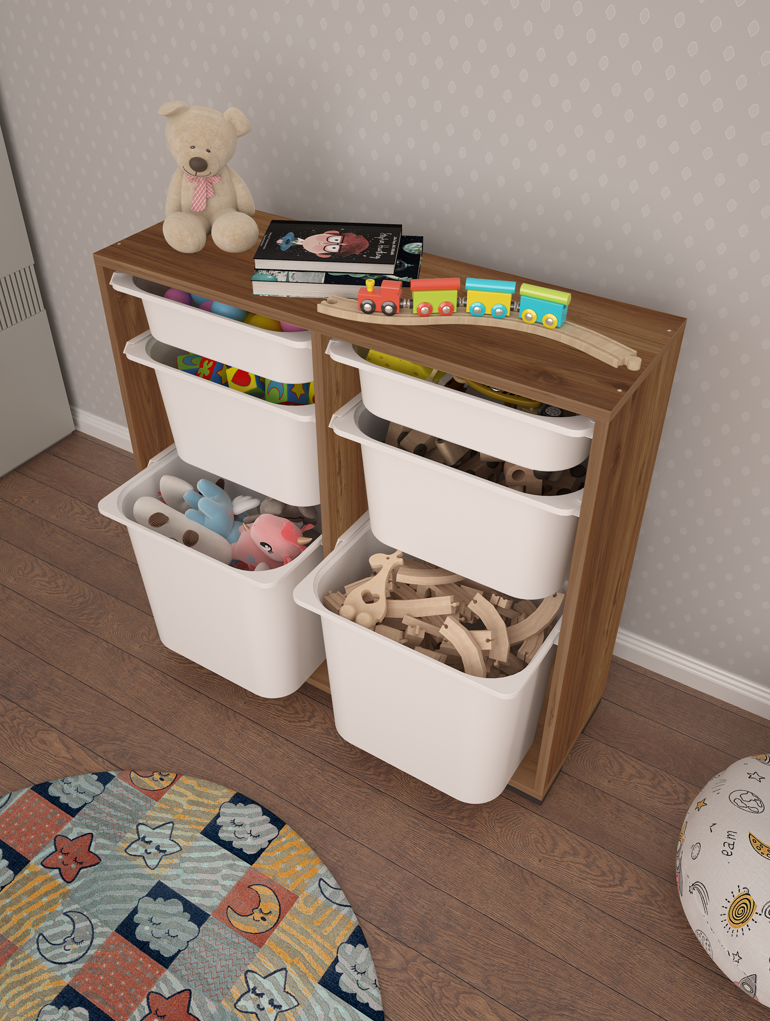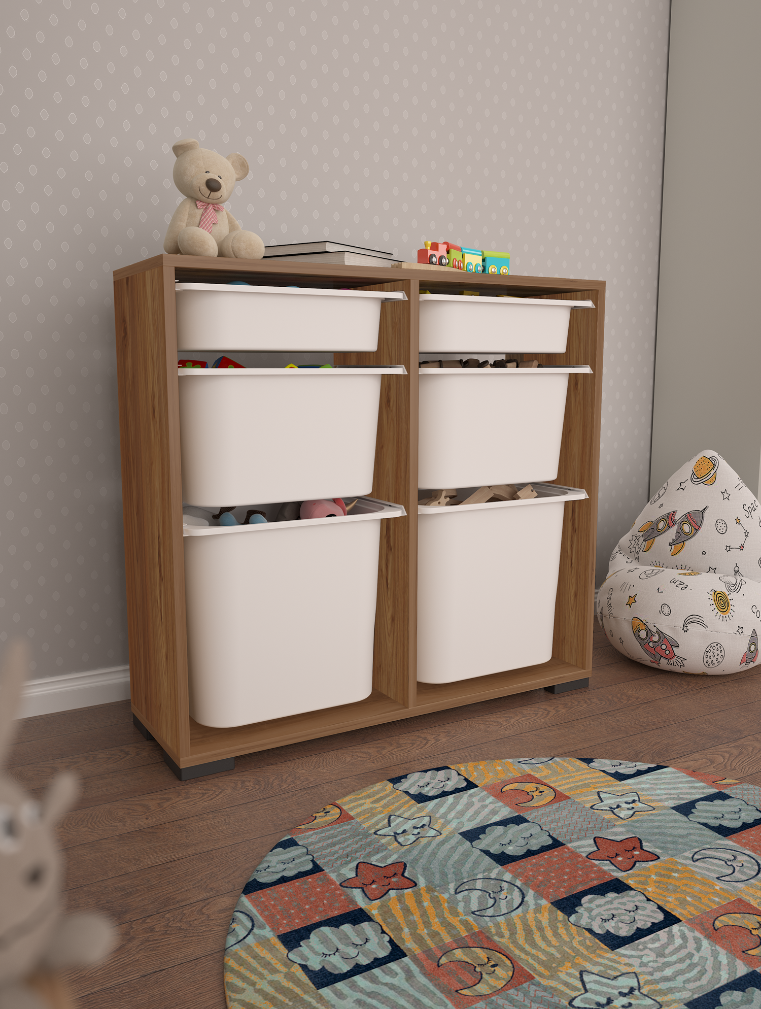 Carla 6 Tropik Ceviz Ultra Derin Sepetli Çok Amaçlı Dolap Oyuncak Dolabı