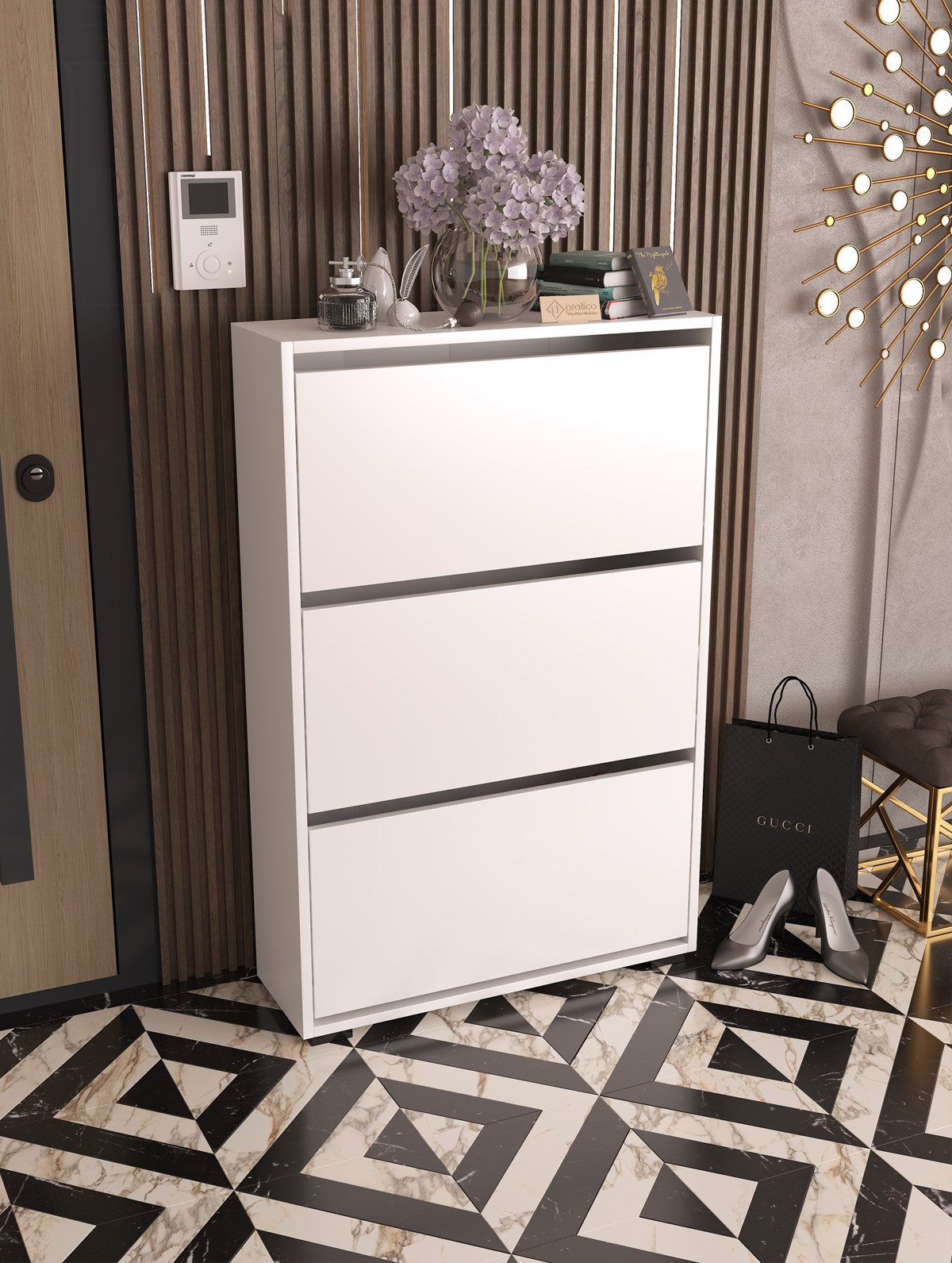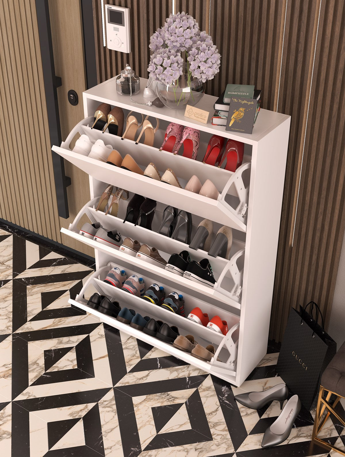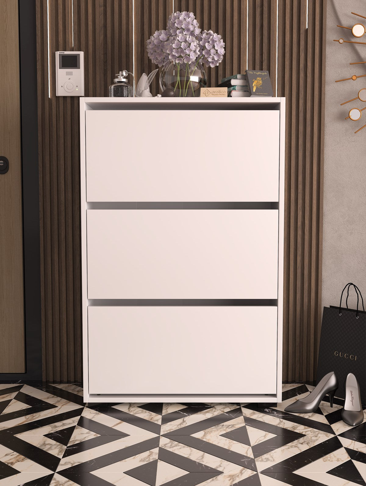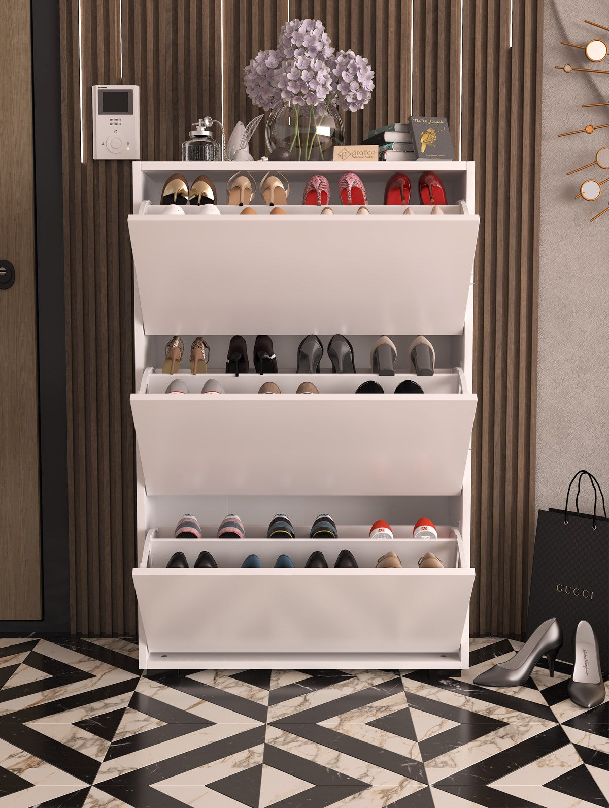 Skeche Raflı Ayakkabılık Düşer Kapak, 3 Bölmeli, Beyaz