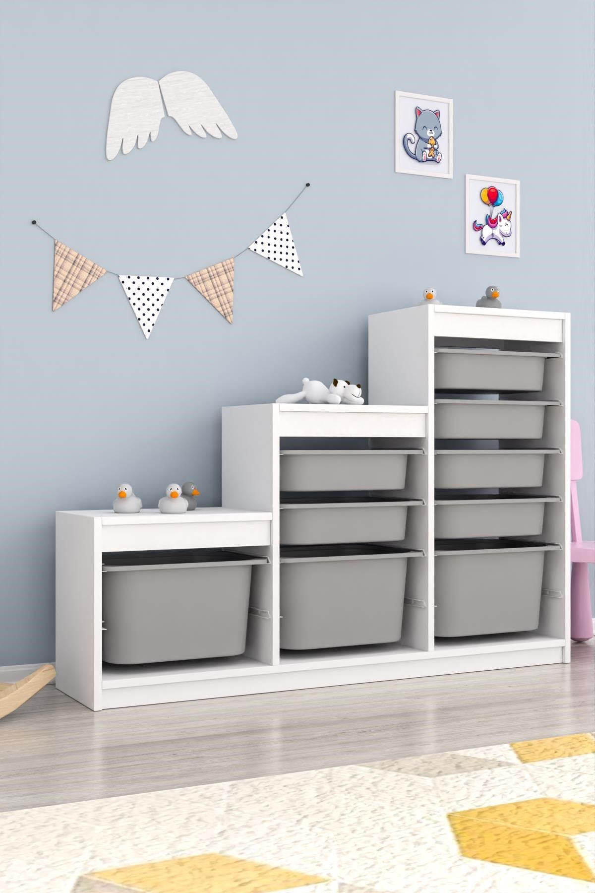 Swiss 9 Sepetli Çok Amaçlı Oyuncak Dolabı Gri